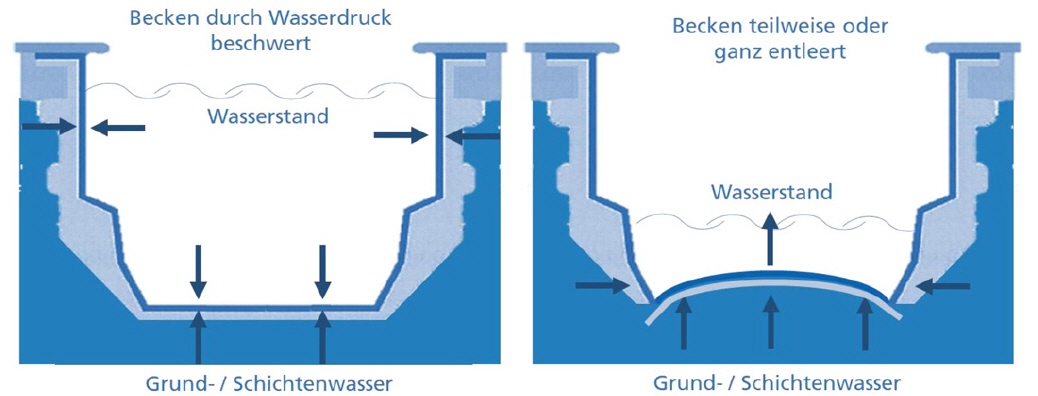Bei gefülltem Becken besteht eine Gefahr durch Grundwasser nicht.