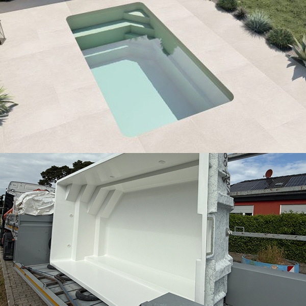 JA Piscines Schwimmbecken bestehen aus hochwertigen Polyesterharzen und Verbundwerkstoffen.