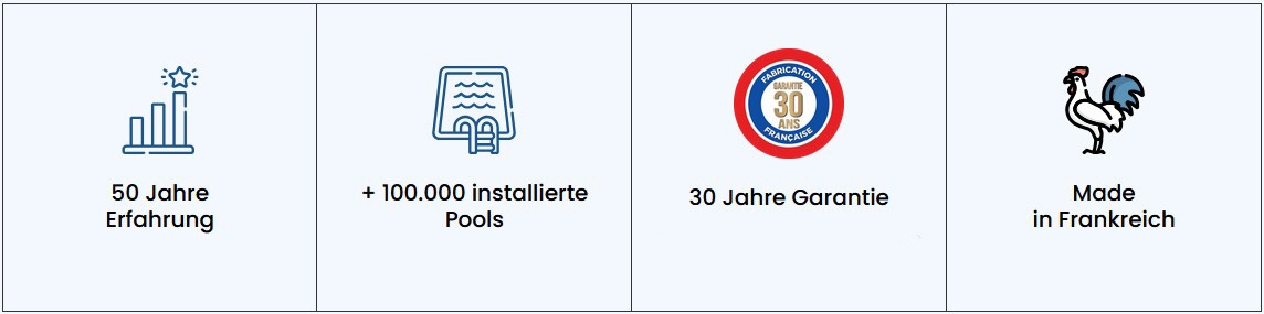 Ihr Provence Polyester Schwimmbad wird in Frankreich in den burgundischen Fabriken in Pouilly en Auxois und Weyer im Elsass produziert.