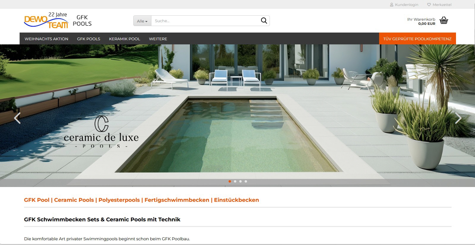 Seit 2003 können Sie in unserem Online Shop hochwertige Pools und Zubehör bestellen und konfigurieren.